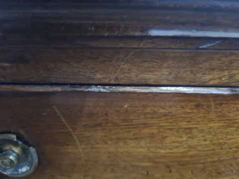 Possibly late 19th century mahogany chest of two short over three long graduated drawers, the rectangular top with applied moulded edge, the whole on bracket feet, 86cm x 79cmCondition ReportThere are a few cracks to the top as well as some scratches. There are also scratches to the sides and fronts. The banding on the top draw is missing a bit. There is chip to the bottom of the side. The top is slightly loose at the back. See attached images.