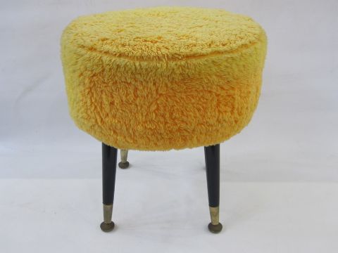 Mid-20th century circular padded stool on ebonised tapering supports with yellow covering, 42cm diameter x 44cm high Condition ReportYellow covering faded and wornGeneral wear and tear to supports - some scratches