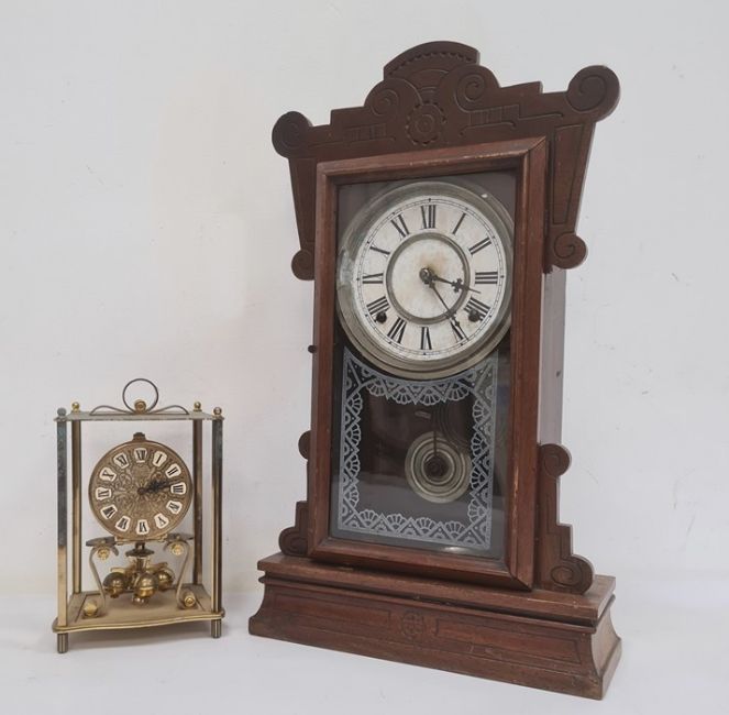 Late 19th/early 20th century clock with Roman numerals to the dial and a brass clock by Kundo (2)