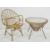 20th century circular coffee table, the glass top on bamboo and wicker tapering body, to four metal legs and a conservatory chair (2) Condition Reportgood condition, all caning present and sound, needs cleaning and oiling, glass good and steel base good