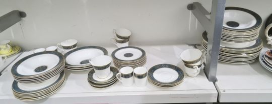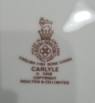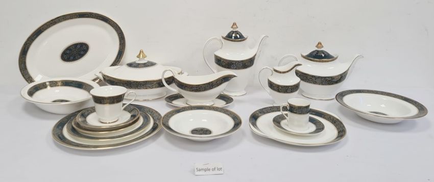 Royal Doulton 'Carlyle' pattern dinner, tea and coffee service, H5018 (comprising; teapot, coffeepot, cream jug, sugar bowl, 7 coffee cans, 7 teacups, tureen sauceboat and stand, 3 serving dishes, 6 coffee can saucers, 4 tea saucers, 11 sideplates, 7 larger plates, 7 small bowls, 16 larger bowls, 13 dinnerplates) Condition Reportno apparent damage , service in good order13 dinner plates13 soup plates7 pudding bowls7 side plates11 tea plates7 teacup and 4 saucers6 coffee cups and saucerslidded tureen, cake plate, serving plate, gravy boat and saucer, tea, coffee pots, cream jug, lidded sugar bowl, veg dish