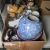 Faux Bonsai tree, a vase of faux white tulips, a large quantity of jewel/trinket boxes, assorted planters, a metal figure of a fairy, etc (5 boxes)