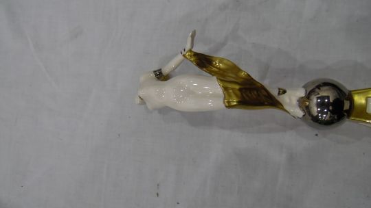 Tim Perks for Cosmic Design Works porcelain figure 'Moonlight', the nude female figure standing on silver lustre sphere, no.14/100, 28cm high Condition ReportThere is no obvious or visible damage