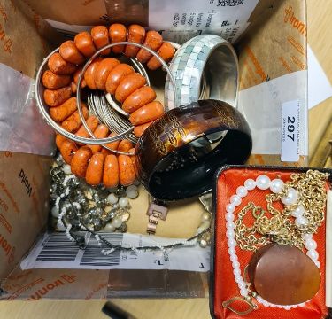 Quantity of costume jewellery to include brooches, bangles, beaded necklaces, etc (1 box)