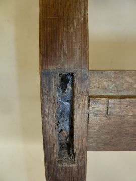 Charles F A Voysey (1857-1941) Arts & Crafts oak chair frame, circa 1902, of simple design with pierced heart-shaped motif to the splat.  Please note this chair is currently in pieces, with damage to the joints, lacking seat and front stretcher.  Provenance: by descent from the estate of the late Herbert John Claridge Turner (1910-1978), a Cheltenham resident.  It was commissioned by Sydney Claridge-Turner, the secretary and general manager of the Essex & Suffolk Equitable Insurance Company.  Voysey designed and fully furnished Turner's weekend home, The Homestead at Frinton on Sea.  From the same estate came a pair of Voysey chairs sold in the Cirencester saleroom by the Cotswold Auction Company for £16,500 in March 2020.  Condition ReportThere is a spot of damp that covers half the back of the top front rail as well as some of the front. There is a split to one of the chair joints, the front stretcher is missing as well as the seat. Please see extra images