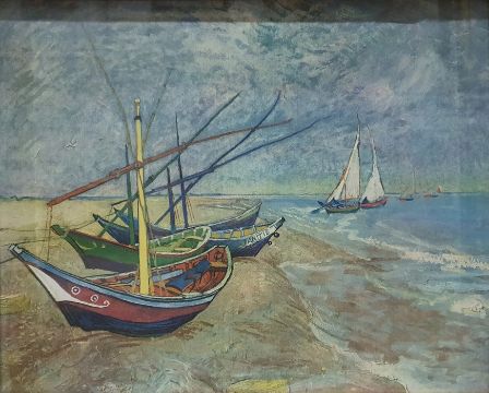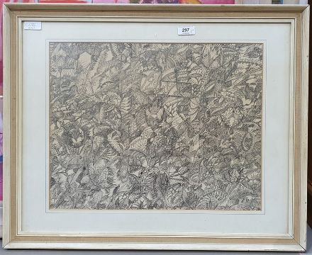 G L Myerson Ink drawing "Study 2", labelled verso 'exhibited at Royal Academy 1973', 35cm x 45cm Colour print Coastal scene (2) Condition ReportThe ink drawing itself appears to be in fair condition. The frame is rubbed in places. See added photos for selected close ups.