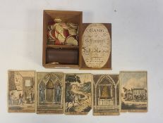 Vintage wooden travelling games box to include chess, dominoes and draughts, etc, with leather