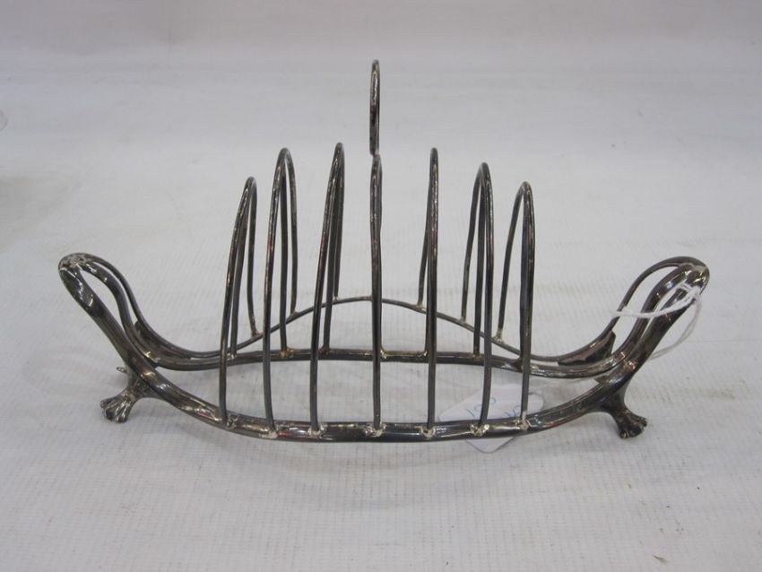 George III silver toastrack, six-division on an openwork boat-shaped frame, with four pad feet, Sheffield 1800, maker's mark rubbed, 21cm wide, 4.5oz