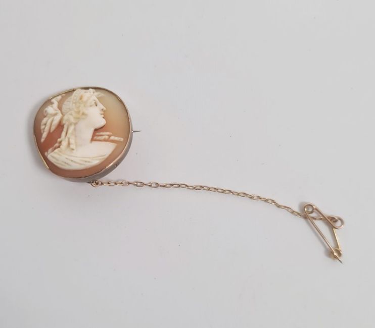 Gold-mounted circular cameo brooch, 2.5cm diameter approx, marks worn possibly 18ct