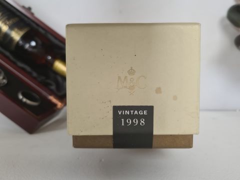 ********** WITHDRAWN ************ Bottle of Millesime Blanc Vintage Moet & Chandon champagne 1998 in original sealed box together with a bottle of Chateau Guiraud Premier Cru 1998 Sauternes in wooden presentation box with fitted wine accoutrements