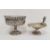 Silver-plated circular pedestal bowl with floral repousse decoration, semi-gadrooned, on circular base "Presented to Miss B Pendleburn by her Uncle and Aunt Watkin on her 21st Birthday", 20cm high and an oval-shaped EPNS pedestal dish with squirrel mount holding nut, scalloped-shaped, on circular gadrooned base, 20cm high (2)