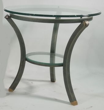Circular coffee table with glass top, on metal base, in the Egyptian taste, 59cm diameter