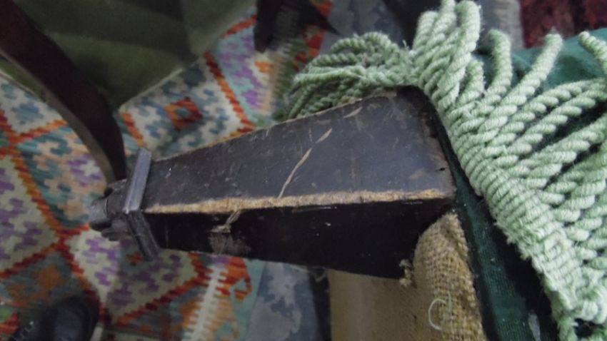 Late 19th century armchair on square tapering supports to brown china castors, one further armchair and a leather case (3) Condition Reportsee added photos