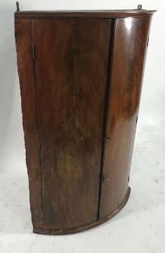19th century wall hanging mahogany bowfront two door cabinet, 100cm high
