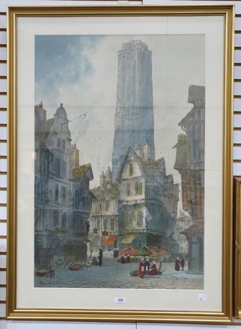 Paul Braddon (20th century school)Watercolour and pastelContinental townscape, signed lower left, 77cm x 52cm and another similar, smaller, unsigned (2)