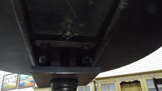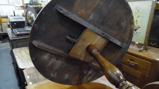 19th century centre table, the mahogany dished top on birdcage, baluster turned supports, to three cabriole legs, terminating claw and ball feet, 74cm diameter and a further snap-top table (2)