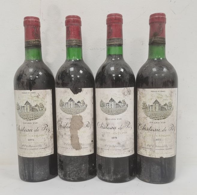 Four bottles of Chateau de Pez St. Estephe to include two bottles 1975, one of 1979 and the other unclear (4) (Provenance - this lot has been stored in a manor house cellar with a natural spring and high damp levels.  All bottles sold as found.)