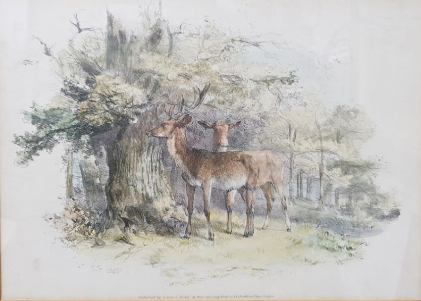 Two coloured lithographsDeer, published by S & J Fuller at their Sporting Gallery, 34 Rathbone Place, London, 23cm x 31cm (2)