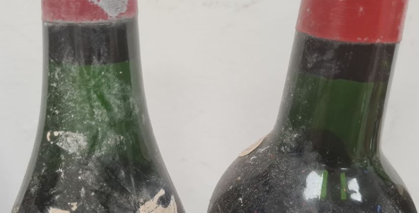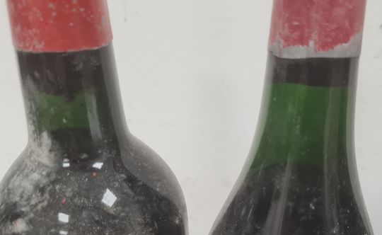 Two bottles of 1961 Lebegue Chateau Gazin, two further bottles (labels torn) and two others (labels missing) (6)  (Provenance - this lot has been stored in a manor house cellar with a natural spring and high damp levels.  All bottles sold as found.)Condition ReportIt is difficult to photograph the levels. They are approximately 7, 7.5, 8 and 8 cm from the top in the bordeaux and 9.5 and 9 in what appears to be burgundy.