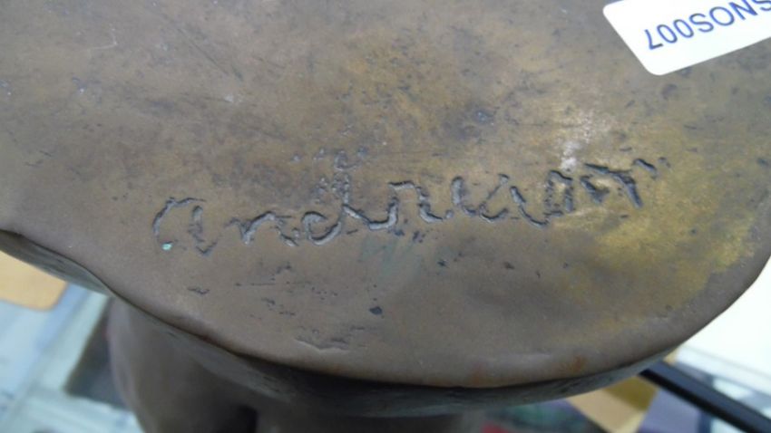 Sharon Lee Andreason modern bronze half female nude torso sculpture, inscribed indistinctly, 29cm high Condition ReportPlease note new measurement of height of torso - now 29cm