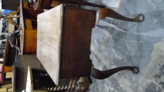 18th century oak lowboy of three drawers, the rectangular top with moulded edge, raised on cabriole supports, 76cm x 70cmCondition ReportThe width is 76 cm, the height is 70cm and the depth is 46cm. There is some worm damage to the feet, the top is split and there are various bumps, marks and stains