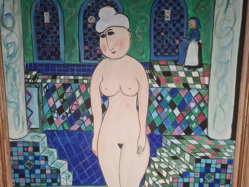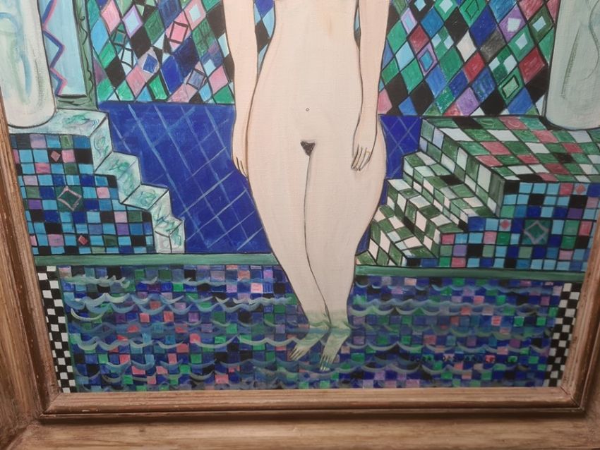 Dora Holzhandler (1928 - 2015) Oil on canvas Female nude at a hamman Signed lower right and dated '8861.5cm x 51cm Condition ReportThe size is confirmed as in the description. There is some damage to the frame in the corners and else wear, no obvious/visible damage to picture. \we are still waiting for provenance from the vendor.