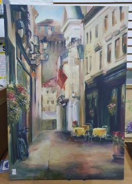 Assorted decorative prints, modern prints, architectural-type prints, prints on canvas, mirrors, etc
