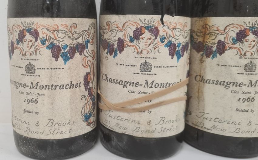 Four bottles of 1966 Chassagne-Montrachet, bottled by Justerini & Brooks, New Bond Street (4)  (Provenance - this lot has been stored in a manor house cellar with a natural spring and high damp levels.  All bottles sold as found.)