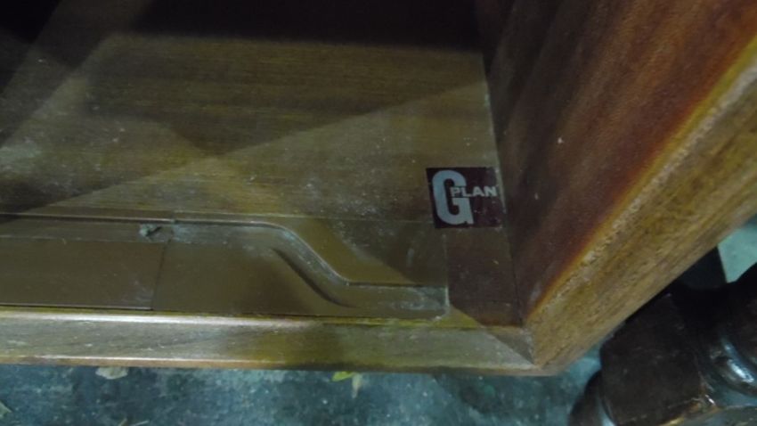 Teak G-Plan lounge unit with various cupboard doors, shelves, drawers, on bases of cupboard doorsCondition ReportThe height of both units is 199cm and the depth is 46cm on both. The larger section is 152 cm wide and the smaller section is 76cm wide. There are various minor scuffs. One sliding door does not open. See photos