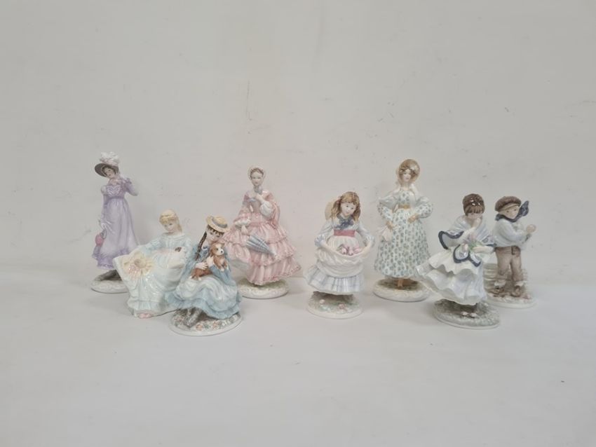 Five Coalport figures "Visiting Day", "Childhood Joys", "The Boy", "Best Friends", "Summer Daydreams" and three Royal Worcester figures "1855 The Crinoline", "1818 The Regency" and "1830 The Romantic" (8)