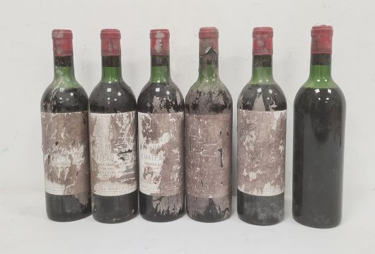 Four bottles 1963 Chateau la Tour 1er Grand Cru Pauillac-Medoc (labels damaged) and two bottles without labels (6) (Provenance - this lot has been stored in a manor house cellar with a natural spring and high damp levels.  All bottles sold as found)