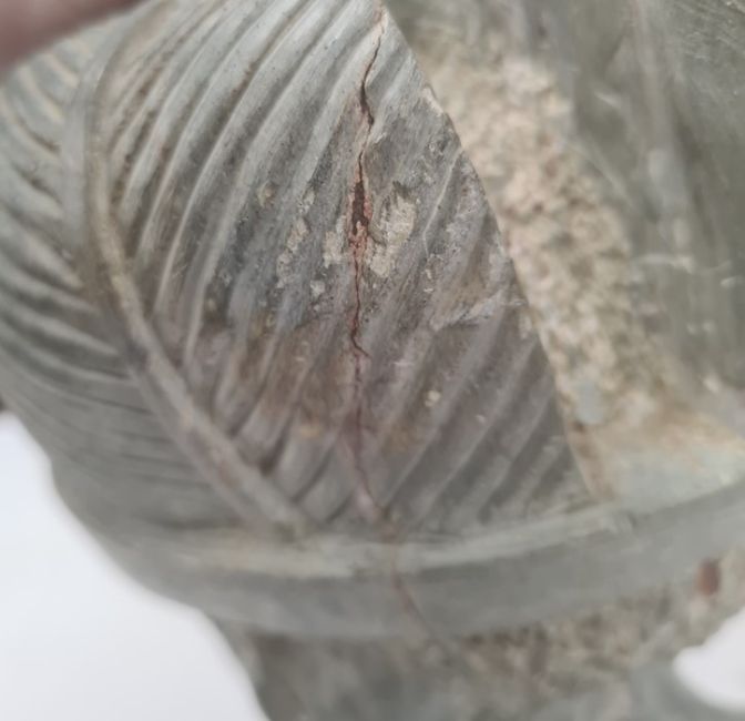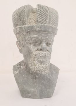 Indigenous carved soapstone bust, man with crown 33cms h.