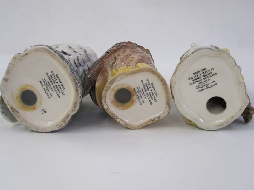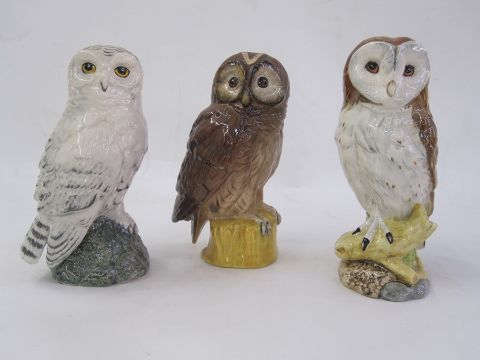 Three Beswick model owls, 1046 various colours, four Doulton Whyte & Mackay ceramic owl whisky decanters and three other Beswick model owls (10)