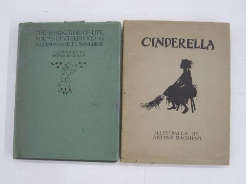 "The Spring Tide of Life, Poems of Childhood by Algernon Charles Swinburne", William Heinemann 1918, colour frontis with tissue guard, vignette on titlepage, colour plates with tissue guards, green cloth with gilt decorations and titles, green dj, glassine cover (2)