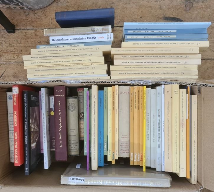 Large quantity of "The Bristol and Gloucestershire Archaeological Society Transactions", large quantity of "Past and Present, a Journal of Historical Studies" and assorted volumes to include "The Classical Buildings of Bath", "Art and The Industrial Revolution", "Long History of Old Age", etc (4 boxes)