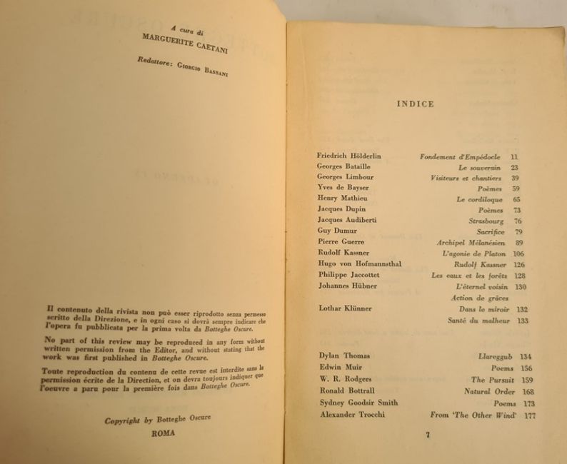 Botteghe Oscure volume IV, 1949, to include authors Tennessee Williams, Stephen Spender, Angus Wilson etc and volume XIII to include authors John Lehmann, Dylan Thomas, Vernon Watkins etc.