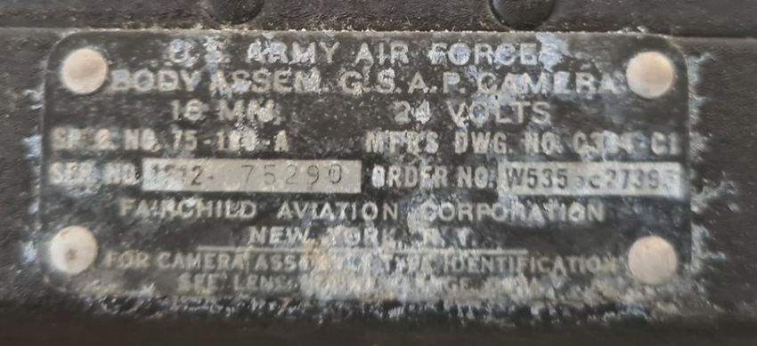 Six magazine film type A-6 spec.no.31142, stamped 'This magazine is the property of the US Government', an object prism camera marked 'US Army Airforce' SP-5751Part of the Wildfowl and Wetlands Trust Collection