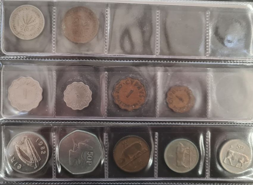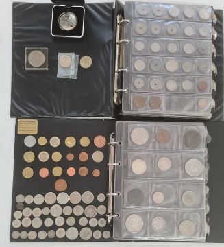 Two folders of world coins with miscellaneous others