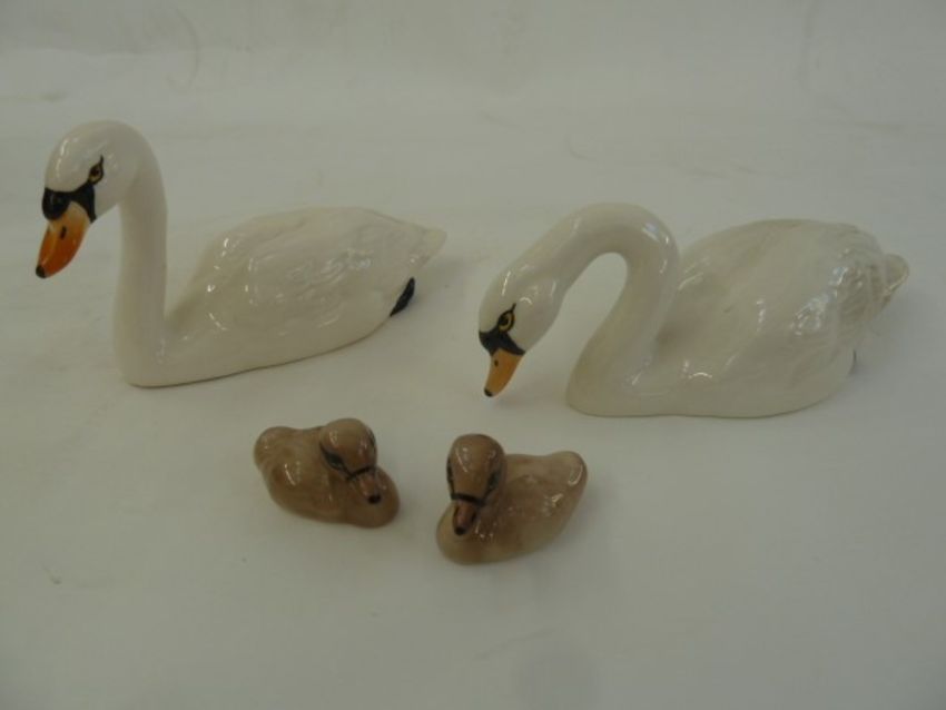 Beswick model swan family viz:- one swan with head raised, one drinking and two cygnets