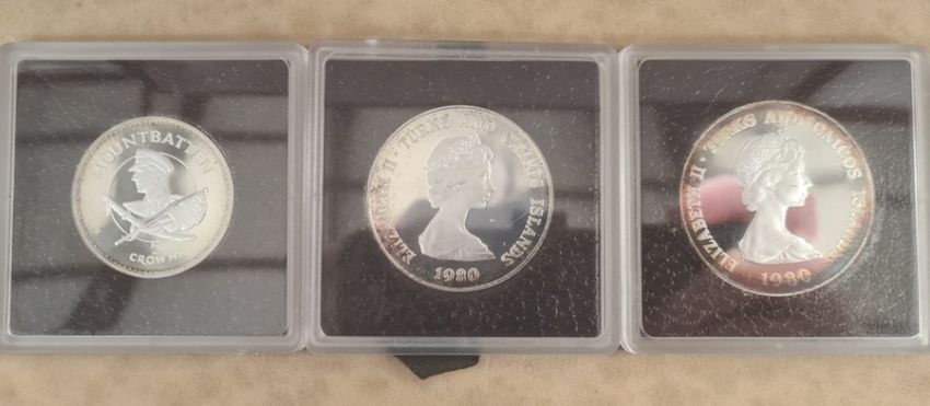 World proof sets including silver proof coins: 1980 Turks and Caicos Islands three coins all silver, 1980 Malta, 1976 Republic of Panama nine coins three silver including 20 Balboa over 3.803 of sterling silver
