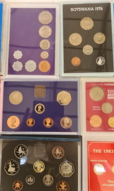 UK proof sets (3) 1972, 1973, 1982 with Brilliant Uncirculated £2, £1 and 50ps (4) proof sets (2) Botswana 1976, Falkland Islands 1974, with uncirculated set of pre/post decimalisation coinage, uncirculated coinage of 1966/7 and set of 4 one pound coins from 1983 and 25 cents from Malta 3 proof set 1982, 1988, 1992 as issued by Royal Mint (1988 inner case dirty).