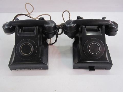 Two vintage bakelite telephones, no.332CB FWR/2 (some damage)