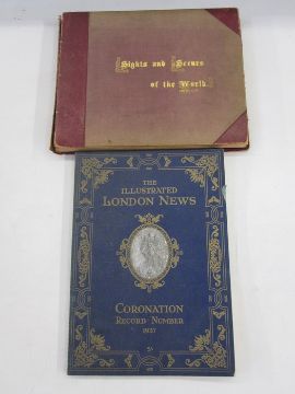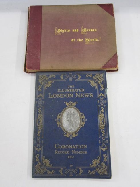 "Sites and Scenes of the World a Photographic Portfolio ...", W B Conkey Company 1895, numerous photographic ills, oblong folio, half leather, gilt titles on front board, front board detached and backstrip detaching (7)