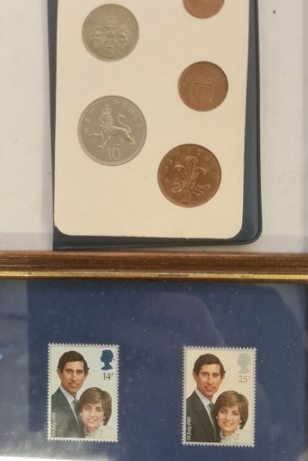 Gold on silver, Silver Jubilee commemorative Royal Nation Life Boat Institution, Silver Jubilee commemorative medal (bronze) and 1977 silver crown, Queen Mother's 90th birthday crown and Egyptian/Israeli peace treaty silver medal and UK brilliant uncirculated sets 1983, 1994 and European Community coin collection together with decimal coin set from Britain and Isle of Man (4) and Charles and Diana crown, stamps and booklet (silver proof)