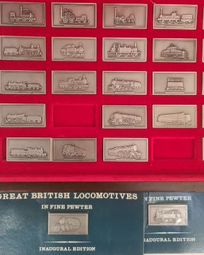 Collection of pewter ingots representing 'Great British Locomotives' and two additional train ingots