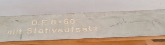 Submarine Binocular Transit Box WWII Germanwith part contents of mounts and glare guards (no 332069) by Carl Zeiss in grey-painted  box marked 'D.F.8X60 mit Stativaufsatz'Part of the Wildfowl and Wetlands Trust Collection