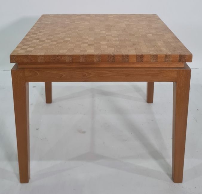 Pair of 1960's parquetry topped coffee tables, each rectangular with block inlaid tops (2) Condition ReportThe length is 60cm X depth 60cm X height 53.5cm.