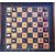 A travel chess board, with one set of pieces stained red, one white, 20.2cm