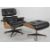 In the manner of Charles & Ray Eames Vitra 'Lounge' chair and ottoman in black leather upholstery (2) ( one button missing from seat)