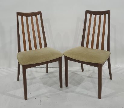 Set of six slatback teak boardroom chairs, probably G-Plan, with pale cream upholstered seats (6)